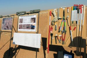 وبين الدكتور عبد القادر دواليبي عضو المكتب التنفيذي المختص بمجلس محافظة حلب في تصريح لمراسل سانا أن البعثة الإنسانية الأرمنية وبالتعاون مع مركز التنسيق الروسي عملت خلال الفترة الماضية على تقديم المساعدة بإزالة الألغام ومخلفات الإرهاب في عدد من المناطق التي حررها الجيش العربي السوري بحلب، واليوم تستكمل عملها في منطقة البرج التابعة لناحية خناصر لتأمينها والإسهام بعودة الأهالي لحقولهم ومنازلهم وإعادة الحياة للمنطقة كلها وبما يُمكّن المؤسسات الخدمية من الدخول وممارسة عملها.