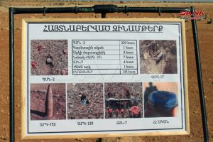 وأوضح فهاكن غوكاسيان رئيس الفرقة العاشرة الأرمنية الإنسانية لإزالة الألغام أن أعضاء الفرقة “عملوا بمهنية عالية لإزالة الألغام وتفكيكها وتطهير المنطقة دون وقوع أي حوادث أو إصابات حيث تم ترحيل العديد من الألغام والعبوات المتفجرة بمختلف الأحجام والأقطار”.