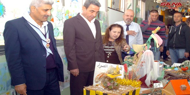 نظمت مديرية البيئة بالسويداء اليوم بالتعاون مع مديرية التربية وفرع منظمة طلائع البعث معرضاً للرسوم البيئية لتلاميذ مدرسة الشهيد فهد النمر للتعليم الأساسي الحلقة الأولى؛ وذلك في ختام فعاليات احتفالية اليوم الوطني للبيئة.