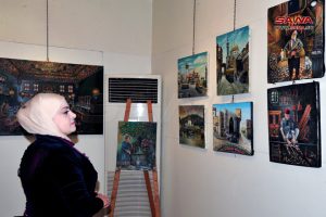 اصطحب عدد من الفنانين من أجيال متباينة جمهور الفن التشكيلي برحلة بين الأحياء الدمشقية القديمة وبيوتها وحاراتها ومعالمها التاريخية، من خلال معرض فني حمل عنوان “دمشق”، جسد أدق التفاصيل التي رسمها فنانون كبار ممن كانت لهم بصمتهم في الحياة التشكيلية السورية.