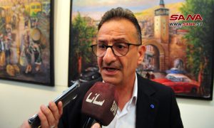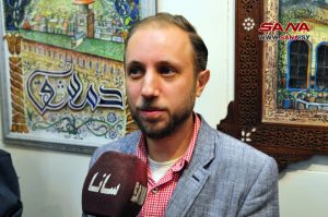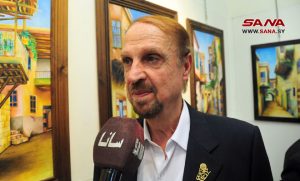 الفنان التشكيلي الدكتور محمد غنوم تحدث لمراسل سانا عن مشاركته التي تمثلت في خمس لوحات، تمازج فيها الخط العربي مع الفن التشكيلي معتمداً على تقنيات الأكريليك والزيتي وهي أعمال رسمها منذ سنوات عدة، فحب دمشق ليس وليد اللحظة بل هي حبه منذ الأزل حسب تعبيره.