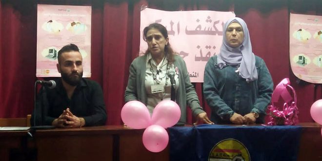 بدورها بينت مسؤولة الصحة الإنجابية في المنطقة الصحية الثالثة بمديرية الصحة رنا حالو أن الندوات الحالية تسهم في تشجيع المواطنين على ضرورة الكشف المبكر عن السرطان، وطريقة التعامل مع الفئة العمرية والمستفيدين كي تصل الفكرة إلى أكبر عدد ممكن من المواطنين، لافتة إلى أنه سيتم خلال الحملة التقصي عن سرطان “الثدي وعنق الرحم” عند السيدات فوق الأربعين عاما، إضافة إلى السيدات المتزوجات من عمر 21 عاماً فما فوق بالنسبة لسرطان عنق الرحم.