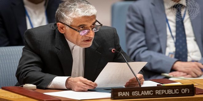 وقال إيرواني في كلمة خلال اجتماع لمجلس الأمن التابع للأمم المتحدة حول “الملف الكيميائي السوري”: “إن عقد الاجتماعات المتعلقة بهذا الملف في مجلس الأمن بفوارق زمنية قصيرة دون تغيير يعزز شبهة التسييس وتكرار الاتهامات ضد سورية”، مشيراً إلى أن خطوة الحكومة السورية بتقديم تقرير شهري إلى المدير العام لمنظمة حظر الأسلحة الكيميائية حول تفاصيل تدمير هذه الأسلحة ومرافق إنتاجها تستحق التقدير.