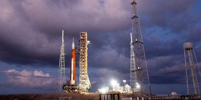 وتم تثبيت صاروخ ناسا الذي يبلغ ارتفاعه ما يوازي 32 طابقاً على منصة الإطلاق الأسبوع الماضي في محاولة ثالثة لإطلاقه في رحلته الأولى غير المأهولة إلى القمر ذهاباً وإياباً.