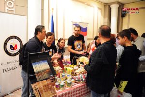 القائم بأعمال السفارة الفلبينية بدمشق فيدا ثريا فيرزوسا أعربت عن سعادتها بالمشاركة بالبازار بعرض منتجات يدوية من صنع بلدها، مشيرة إلى وجود اتفاقيات تعاون ثقافية وتجارية بين الفلبين وسورية.