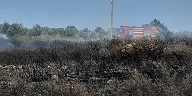 أخمد عناصر فوج الإطفاء وعناصر دائرة الحراج بمديرية الزراعة في محافظة طرطوس حريقاً اندلع ظهر اليوم في منطقة الصفصافة قرب دير مار إلياس بريف طرطوس.
