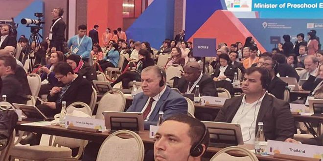 وتشارك سورية بالمؤتمر الذي انطلقت أعماله أمس ويستمر حتى الـ 16 من الشهر الجاري حيث تضمنت الجلسة التنظيمية للمؤتمر التي عقدت اليوم انتخاب وزيرة ما قبل المدرسة في أوزبكستان رئيساً للمؤتمر وسورية نائباً لرئيس المؤتمر ضمن خمسة نواب وفقاً للتقسيم العالمي للمجموعات حسب المناطق الجغرافية، وجرى بعدها انتخاب مقررين ولجان تدوين لأعمال المؤتمر.