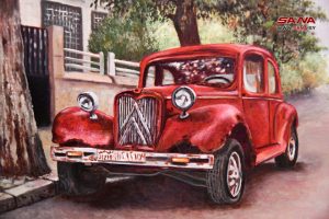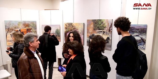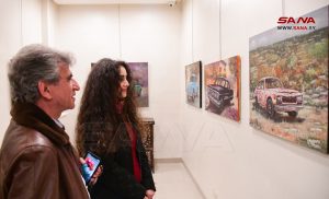 أشاعت لوحات معرض الفنان التشكيلي عمار الشوا حالة من الحنين للماضي، عند زوار صالة عشتار مساء اليوم في افتتاح المعرض، من خلال ثيمة فنية خاصة مزج فيها السيارات القديمة مع الطبيعة البكر.