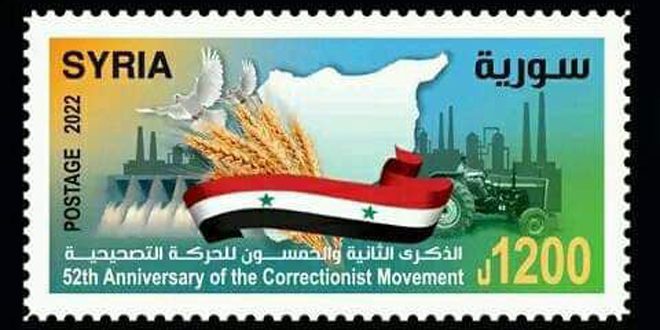 أصدرت المؤسسة السورية للبريد طابعاً بريدياً تذكارياً بمناسبة الذكرى الثانية والخمسين للحركة التصحيحية المجيدة.
