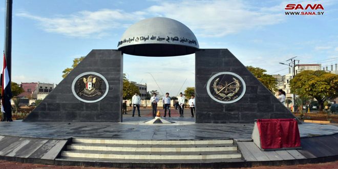 بمناسبة الذكرى الثانية والخمسين لقيام الحركة التصحيحية دشنت محافظة حمص بالتعاون مع الفعاليات الأهلية اليوم نصباً تذكارياً للشهداء في حديقة روضة شهداء الفردوس بحي الزهراء.