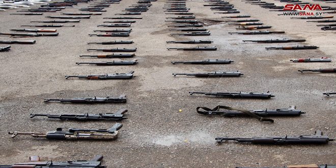 درعا.. أسلحة وذخائر من مخلفات إرهابيي تنظيم (داعش) في حي طريق السد