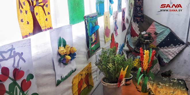 من جهتها بينت المشرفة على المعرض الفني بشرى الأحمد أن المعرض ضم لوحات ومجسمات تشكيلية وأعمالاً يدوية مختلفة مصنوعة من الكرتون والورق، باستخدام توالف المواد وإعادة تدويرها، إضافة إلى رسومات من البيئة المحلية لمنطقة تدمر.