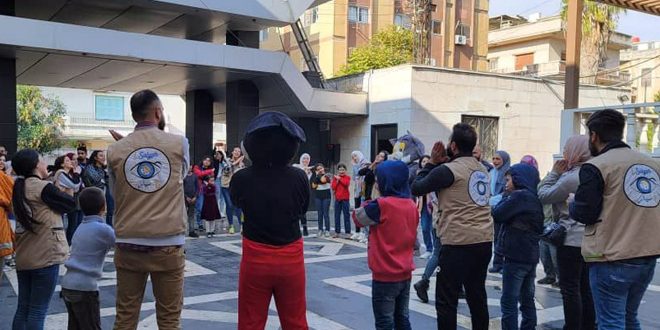 نظمت مراكز “ستدي زون حمص” بالتعاون مع فريق سيار ومهارات الحياة بحمص نشاطاً ترفيهياً للأطفال فاقدي الرعاية الأسرية بمناسبة اليوم العالمي للطالب، في قسم الأطفال بثقافي حمص، شارك فيه 35 طفلاً من سيار، و85 طالباً جامعياً من مختلف الاختصاصات.