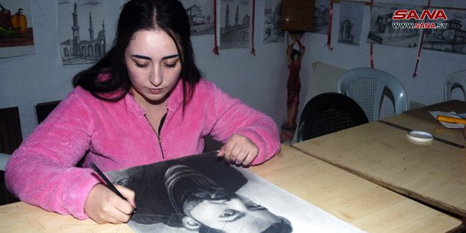 هديل 20 عاماً طالبة في السنة الثانية بكلية الفنون الجميلة في جامعة دمشق قالت خلال حديثها لنشرة سانا الشبابية: “إن تسجيلها بالثانوية الفنية النسوية في الصف العاشر دفعها للاهتمام بالرسم وتعلمه بمساعدة الفنان مازن حمشو الذي تابعها خطوة بخطوة وصقل مهاراتها وشجعها لاحقاً لدخول الكلية، ليتابعها فيما بعد الفنان التشكيلي عماد النداف الذي تعلمت منه، واستفادت من خبرته، إضافة إلى أنه منحها الثقة بتعليم الأطفال الموهوبين ضمن مرسمه”.