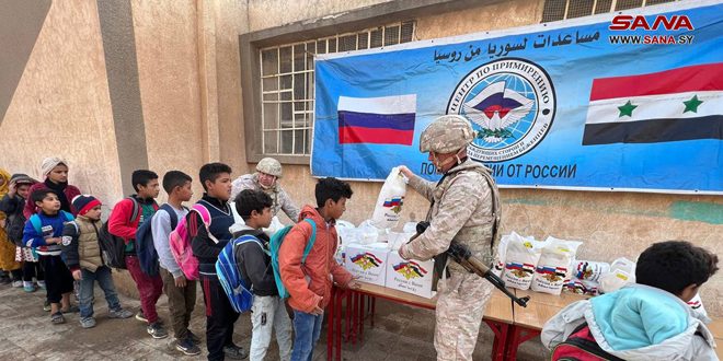 وبين رئيس الفريق الروسي في تصريح لمراسلة سانا أن القوات الروسية قدمت اليوم 650 سلة غذائية للأهالي، إضافة للمساعدات الطبية، لافتاً إلى أن القوات الروسية تسعى لمساعدة الشعب السوري في ظل الحصار الجائر المفروض عليه ظلماً.