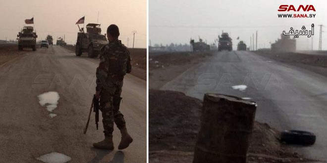 اعترض حاجز للجيش العربي السوري رتل آليات عسكرية لقوات الاحتلال الأمريكي حاول الدخول إلى قرية الدمخية في ريف القامشلي بالحسكة، وطرده من المنطقة.