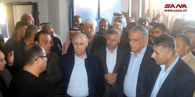 اطلع وزيرا الموارد المائية الدكتور تمام رعد والزراعة والإصلاح الزراعي المهندس محمد حسان قطنا اليوم على واقع إعادة تأهيل محطات الضخ وشبكات الري في مشروع القطاع السابع للري الحكومي، ومركز الجلاء لإكثار النخيل في منطقة البوكمال بريف دير الزور الشرقي.