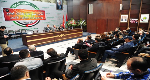 كما ناقش أعضاء المؤتمر الذي عقد في قاعة السابع من نيسان بفرع دمشق لحزب البعث العربي الاشتراكي خطط إنجاز مشاريع لتمويل صندوق النقابة وضرورة تفعيل مكتب العلاقات العامة المركزي وإيجاد صيغة مع وزارة المالية بخصوص ضريبة الدخل والأجور المستوجبة على العقود واصدار طابع نقابي والربط الحاسوبي بين النقابة والفروع.