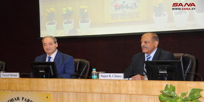 وقدم الوزير المقداد عرضاً عن آخر التطورات في سورية والمنطقة والعالم وعن العلاقات السورية الهندية، لافتاً إلى إنجازات سورية في مجال مكافحة الإرهاب والمخاطر التي يفرضها وجود الاحتلال في بعض المناطق واستمرار بعض الدول بدعم الإرهاب وتوظيفه لخدمة أجنداتها.