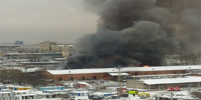 ونقلت وكالة تاس عن وزارة الطوارئ الروسية قولها: “إنه تم تلقي معلومات عن وقوع حريق في القسم 18 من المبنى رقم 1 في ساحة كومسومولسكايا، وتوجهت طواقم الدفاع إلى مكان الحادث، وشرعوا بمحاولة إخماد الحريق الذي نشب في مستودع مكون من طابقين”.