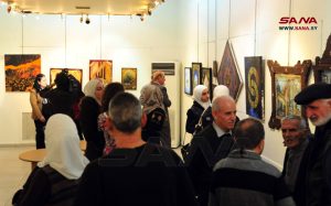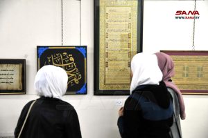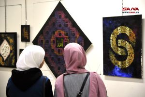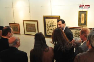 إطلاق المهرجان جاء عبر معرض لأساتذة الخط العربي وفنانيه ضم 50 عملاً تقريبا بمشاركة 21 فناناً وفنانة من مختلف المحافظات السورية وبعدة تقنيات وأساليب في فنون الخط والزخرفة واللوحات الحروفية.