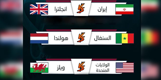 تستكمل المجموعة الأولى بالدور الأول لنهائيات كأس العالم في قطر مبارياتها اليوم بلقاء منتخب السنغال وهولندا على استاد الثمامة، فيما تنطلق منافسات المجموعة الثانية بهذا الدور بمباراتي إنكلترا مع إيران على استاد خليفة، والولايات المتحدة الأمريكية مع ويلز في استاد أحمد بن علي.