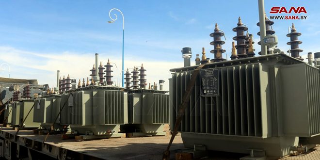 وبين لطفي أن الشحنة تضمنت 10 محولات كهربائية، 5 منها باستطاعة 100 ك.ف.أ، و5 باستطاعة 200 ك.ف.أ، إضافة إلى 40 برميل زيت للمحولات، وأكبال وأمراس، و20 قاطعاً هوائياً.