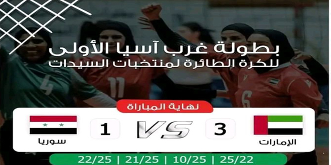 خسر منتخب سورية للكرة الطائرة للسيدات أمام المنتخب الإماراتي بشوط لثلاثة أشواط في الدور ربع النهائي.