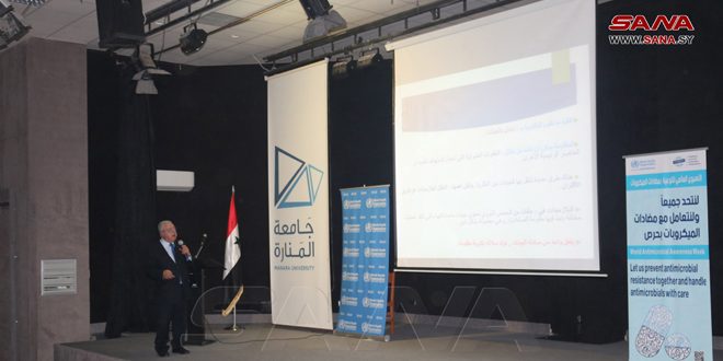 نظمت جامعة المنارة الخاصة باللاذقية بالتعاون مع منظمة الصحة العالمية ومجلس الشباب السوري، فعالية بمناسبة الأسبوع العالمي للتوعية بمضادات الميكروبات تحت عنوان “انشر الوعي وساهم في وقف مقاومة الميكروبات للأدوية”.