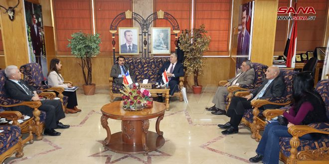 وأشار الخطيب خلال اللقاء إلى أهمية الارتقاء بمستوى العلاقات العلمية والبحثية بين الجانبين وتعزيز مجالات التعاون وتبادل الخبرات بين الجامعات السورية والتشيلية في إجراء البحوث العلمية والتدريب والتأهيل والتأسيس لعمل مشترك في الاختصاصات العلمية.