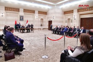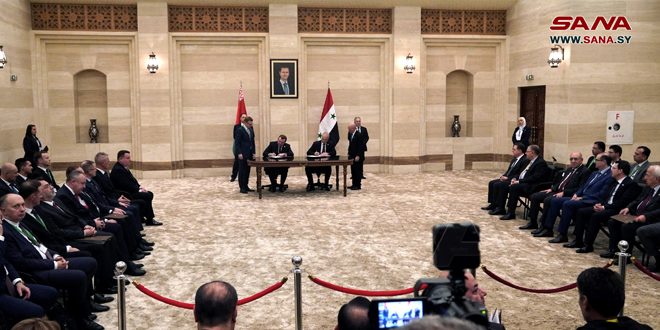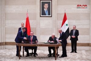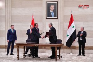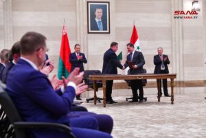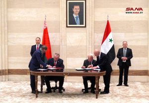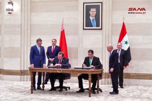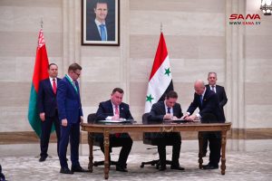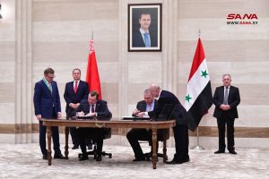 وقعت سورية وبيلاروس اليوم ست اتفاقيات ومذكرات تفاهم في مجالات التبادل التجاري والتربية والإسكان والنقل والصناعة والجمارك، وذلك في ختام المباحثات الرسمية الموسعة التي عقدها رئيس مجلس الوزراء المهندس حسين عرنوس ورئيس وزراء جمهورية بيلاروس رومان غولوفتشينكو وبحضور وفدي البلدين.