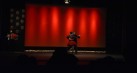وتفرد الحفل بتقديم فقرة تمثيلية ابتدأها المخرج عروة العربي من الشاشة عن مسرح رائد هذا الفن المسرحي السوري أبي خليل القباني والمواجهة القاسية التي لقيها مسرحه من قبل “الغلاة والمتطرفين” ليكون هذا المشهد ذروة هذا الحفل بين كل من أبي خليل القباني الذي قام بأداء دوره المغني حسين عطفة وبين خصمه اللدود أبي سعيد الغبرا والذي قام بأداء دوره الفنان يوسف المقبل لتنتهي هذه المجابهة بإحراق مسرح القباني الذي كان في خان الجمرك بدمشق لكن الفنان عروة العربي واجه نار التعصب التي تمثلت في شخصية أبي سعيد الغبرا بياسمين دمشق والحنين وقدرة الفن على مقارعة التطرف والإرهاب والتكفير.