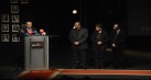 ذهب الفنان عروة العربي في الاحتفالية التي قام بإخراجها ليوم المسرح العالمي هذا العام عن نص لشادي كيوان نحو أسلوب أقرب إلى عروض “البيرفورمانس” مقارباً عدة فنون في الحفل الذي أنتجته مديرية المسارح والموسيقا مشاركةً مسرحيي العالم الاحتفاء بعيدهم السنوي حيث اختار العربي عدة مستويات للفضاء الذي شغله بشاشة سينمائية في عمق الخشبة مستعيراً أجواء توزيع جوائز الأوسكار للتعريف بشخصياته التي أرادها شخصيات ساخرة من واقع المسرح الذي وصل إليه هذه الأيام.