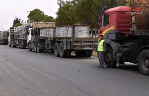 وتضم القافلة المؤلفة من 18 شاحنة وآلية مراكز تحويل وزيوتاً خاصة بالمحولات وأبراجاً حديدية وأعمدة بيتونية وخشبية وكابلات وأمراساً وعلب وصل ونهاية والتي من المقرر توزيعها وفق الأولويات على المواقع الأكثر احتياجا والتي تخدم أكبر عدد ممكن من الأهالي العائدين إلى منازلهم لزيادة وثوقية الشبكة الكهربائية.
