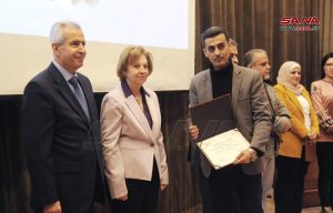انطلاقاً من أهمية المسابقات الأدبية في التحفيز على الكتابة والفكر والإبداع، كرمت وزارة الثقافة- الهيئة العامة السورية للكتاب ضمن فعاليات أيام الثقافة السورية الفائزين في المراكز الثلاثة الأولى لجوائز مسابقاتها الأدبية والفنية لعام 2022 في رحاب مكتبة الأسد الوطنية بدمشق.