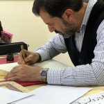 أتاحت ورشة العمل المجانية في خط الديواني مساء اليوم الفرصة أمام الدارسين والمهتمين للتعرف على أساسيات وتاريخ هذا الخط العريق، وذلك ضمن فعاليات مهرجان محبة قلم 3 الذي تقيمه جمعية بيت الخط العربي والفنون بالتعاون مع مديرية ثقافة دمشق بالمركز الثقافي في أبو رمانة.
