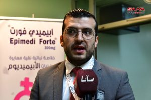 الصيدلانية لينا الشيخ عيسى من شركة ابن الهيثم للأدوية قالت: نشارك في المؤتمر مع الأطباء كشركاء بالصحة من خلال توفير طيف واسع من الأصناف الدوائية المواكبة لأحدث الزمر الدوائية العالمية المتطورة، فيما أشار أنس حامد من شركة (ألترا ميديكا) للصناعات الدوائية إلى أن الشركة تقدم مستحضراً يتم طرحه لأول مرة في سورية لمعالجة الاحتباس البولي وبعض الأمراض البولية الأخرى.