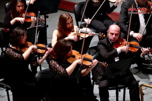 وكانت الآلات الوترية في المحطة الأولى من الأمسية النجم البارز بأنغام تناوبت بين الصخب والشجن بمرافقة عازف البيانو الشاب قيس الصفدي الذي أبدع بأداء موسيقا “حلم” من تأليف الموسيقي الراحل ضياء سكري وأعد توزيعها الأوركيسترالي صهيب السمان، وبعدها استحضرت الأوركيسترا مقطعاً من “قصيدة حب” للموسيقي السوري الراحل صلحي الوادي.