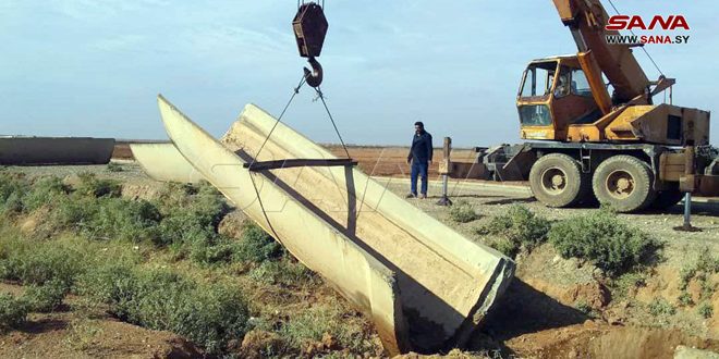 تواصل المؤسسة العامة لاستصلاح الأراضي صيانة أقنية الري، وتعزيل المصارف المطرية في مشروع مسكنة بريف الرقة المحرر.