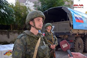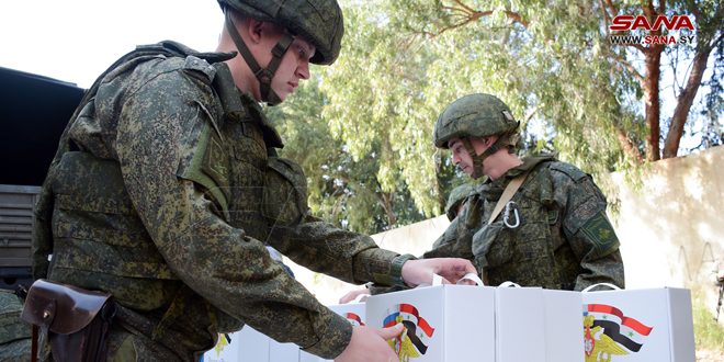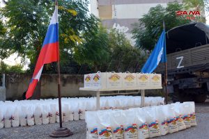 وزع مركز التنسيق الروسي في سورية مساعدات لعدد من أهالي ضاحية تشرين في مدينة اللاذقية، شملت 300 سلة غذائية.