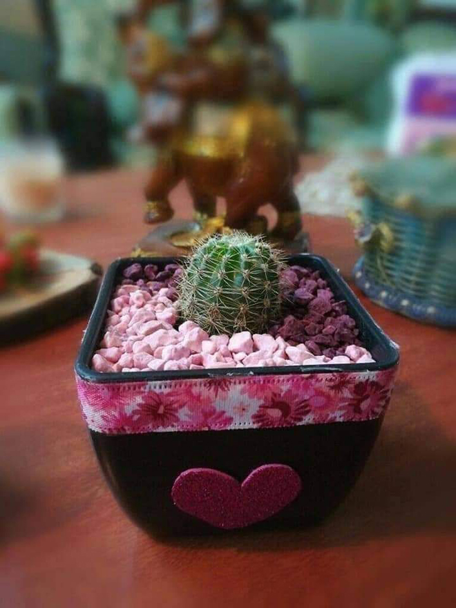 وأوضحت أنها اتجهت إلى الصبار كتجربة أولى لما يحمله من معاني القوة والصبر والجمال ولازدياد الطلب عليه من فئة الشباب وربات المنازل وقد عملت بعد زراعته على تنسيقه بأشكال و أحجام و ألوان متنوعة، ومن ثم تزيينه بأحجار ملونة مع إضافة ملصقات تحمل عبارات جميلة وجذابة.