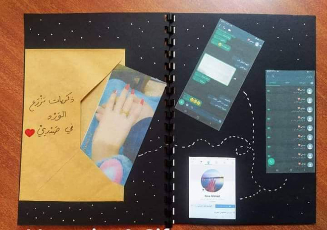 وعن تنسيق الهدايا وتوثيق الذكريات وجمعها في دفتر خاص أوضحت أنها تنفذ هذه المنتجات لأنه من الجميل لكل شخص أن يوثق ذكرياته في دفتر يجمع مراحل حياته ويحفظ إنجازاته خطوة بخطوة مندفعة من حبها للعمل بالورق والكرتون الأسود والرسم عليه كما أنها تصمم هدايا لحفلات التخرج.