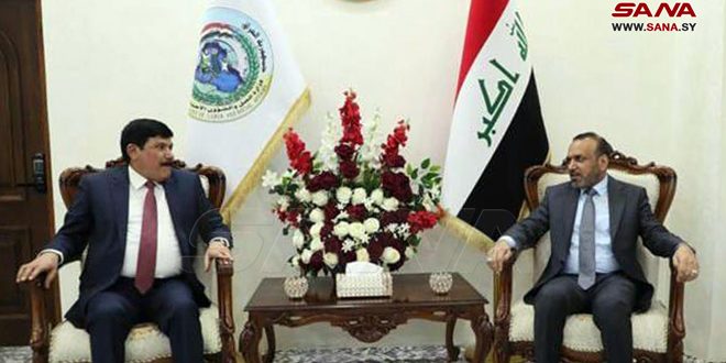 بحث وزير العمل والشؤون الاجتماعية العراقي أحمد الأسدي مع السفير السوري في بغداد صطام جدعان الدندح، سبل تعزيز التعاون بين البلدين في مجالي العمل والشؤون الاجتماعية.