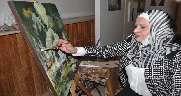 التشكيلية وفاء الحافظ .. أعمالها تعكس تعلقها بدمشق