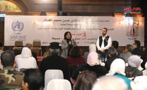 بمناسبة اليوم العالمي لمكافحة الإيدز الذي يصادف الأول من كانون الأول من كل عام، نظمت وزارة الصحة بالتعاون مع منظمة الصحة العالمية احتفالية تحت شعار “أخبر صديق: اختبار الإيدز سري- مجاني بسيط”، وذلك في فندق الشيراتون بدمشق.