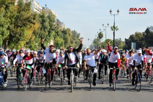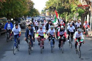بمشاركة أكثر من 400 دراج أقامت سفارة دولة الإمارات العربية المتحدة بدمشق مسيراً رياضياً للدراجات الهوائية بمناسبة عيد الاتحاد الوطني الحادي والخمسين لدولة الإمارات، وذلك بالتعاون مع الاتحاد الرياضي العام.