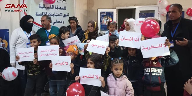 وتضمن النشاط الذي أقيم في مركز السنابل للمعالجة الفيزيائية وسط مدينة الحسكة فقرات مسرحية وغنائية وندوات حوارية بين أمهات الأطفال بعنوان “إعاقتي لا تمنعني من الأمل”.