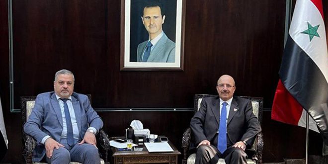 بحث وزير المالية الدكتور كنان ياغي مع سفير مملكة البحرين بدمشق وحيد مبارك سيار سبل تعزيز علاقات التعاون بين البلدين في المجالات المالية والمصرفية والجمركية.