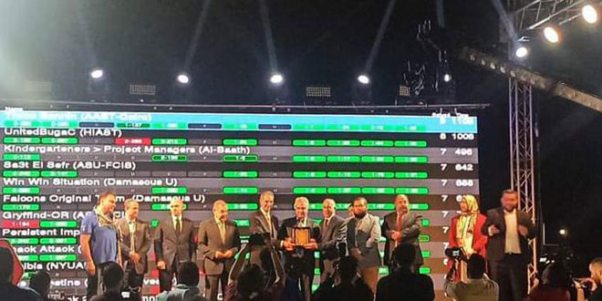 وبحسب بيان اللجنة المنظمة للمسابقة، فإن فريقين من جامعة البعث والمعهد العالي للعلوم التطبيقية والتكنولوجيا، أحرزا الميداليتين الذهبيتين فيما أحرز فريقان من جامعة دمشق الميداليتين الفضيتين.