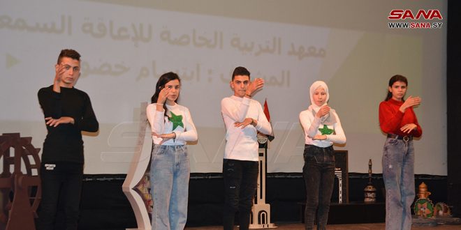 وأشارت مديرة معهد التربية الخاصة لرعاية المصابين بالإعاقة السمعية الدكتورة نسرين درويش إلى أن المعهد يضم العام الحالي 40 طفلاً من عمر الـ 4 أعوام وحتى الـ 12 عاماً، ويشاركون سنوياً في الاحتفالية بفقرات فنية باستخدام لغة الإشارة، وفي المعرض الفني بمنتجاتهم ورسوماتهم الإبداعية.